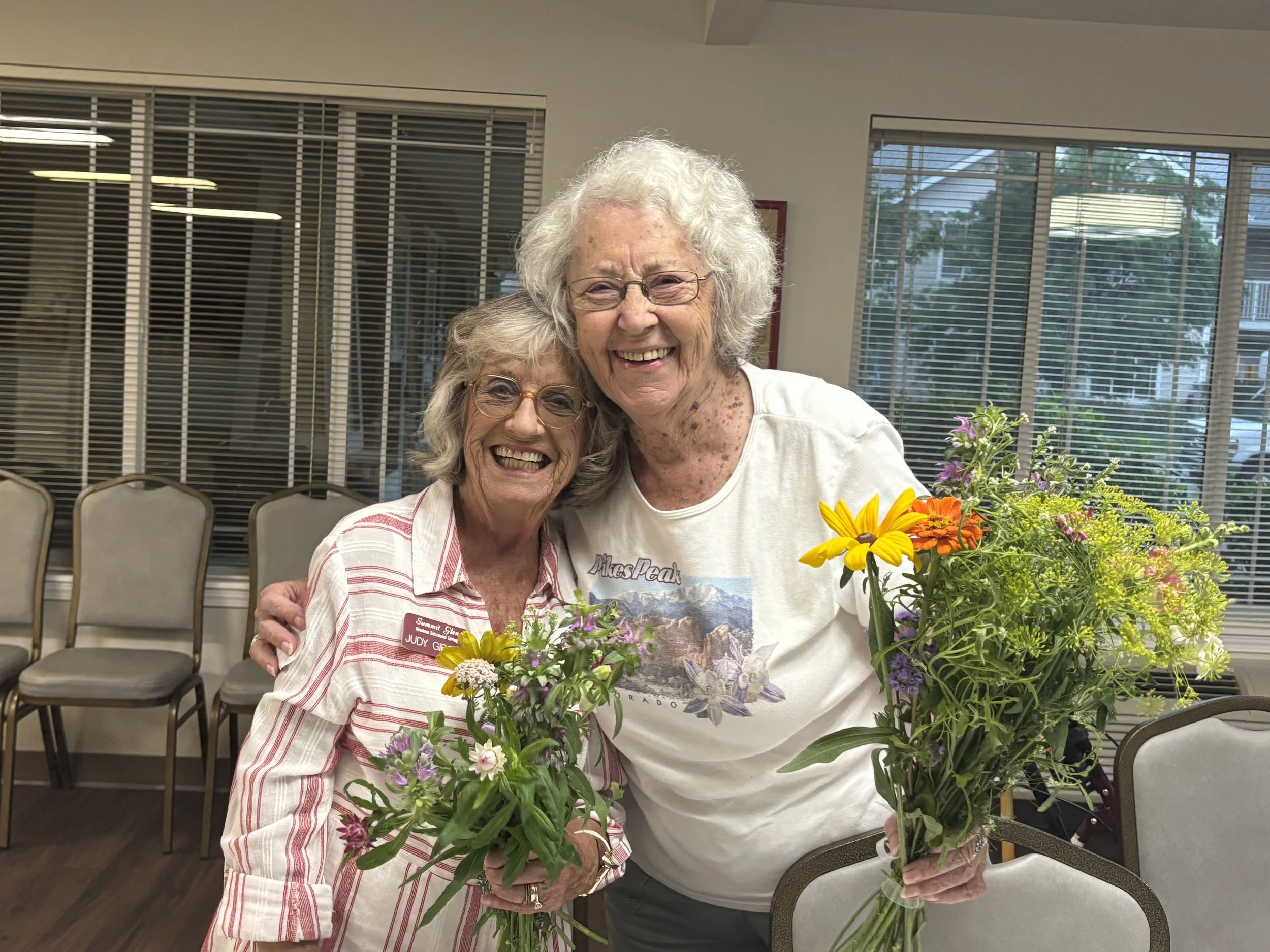 Summit Glen Retirement Living: Located right next to the farm, residents received three large donations throughout Summer 2025 for bouquet making activities.
